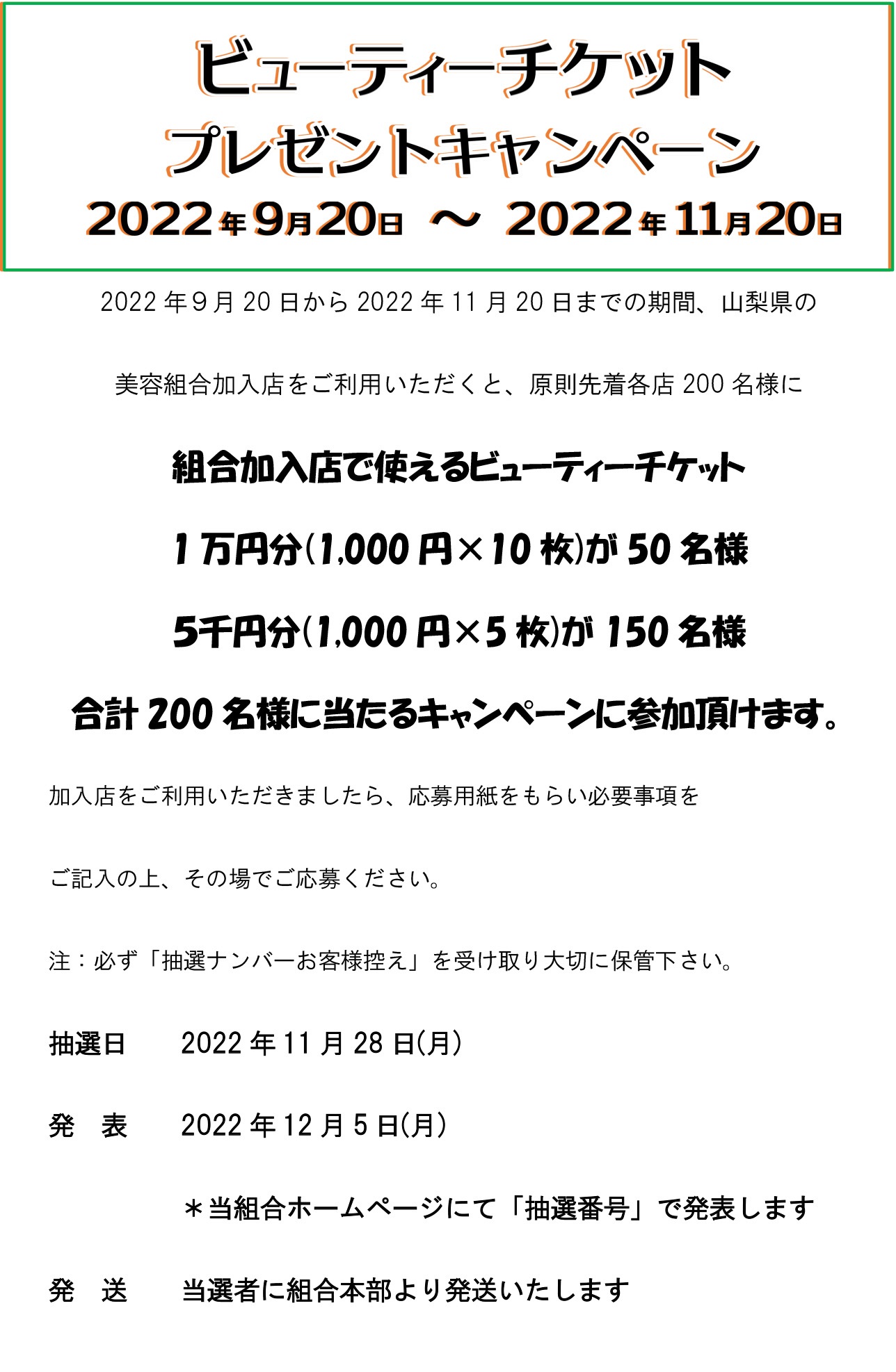 2022.11.15 ニュース ビューティーチケットプレゼントキャンペーンもうすぐ応募〆切です!! 組合加入店で使える「ビューティーチケット」が当たる ビューティーチケットプレゼントキャンペーンがもうすぐ応募締め切りです Social Share 前の記事 次の記事 記事一覧へ戻る